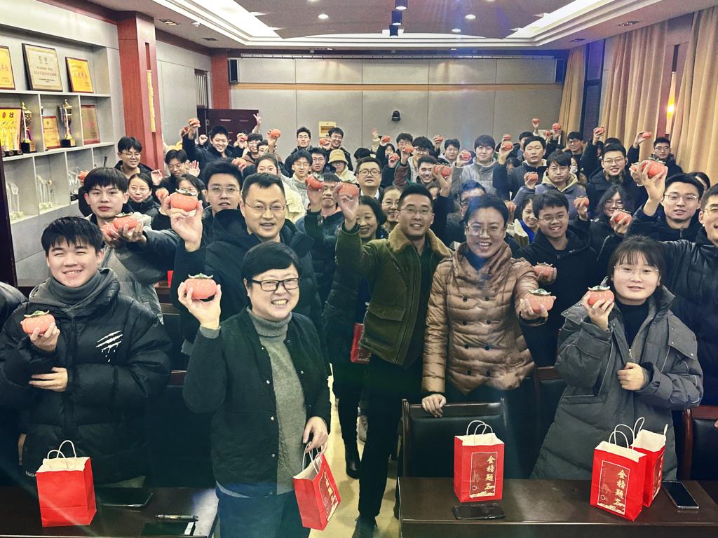 活动伊始,高慧与奋战考研学子们进行亲切交流,叮嘱并鼓励同学们在最后冲刺阶段,一是要适当解压,保持良好的心理状态,沉着应对,凝心聚力,持之以恒;二是要劳逸结合,保持良好的身体和学习状态。祝福每一位考研学子士气如虹,从容提笔,一举成“硕”!随后,老师们为考研学子送上公司精心准备的“金榜题名”考研大礼包。大礼包内包含“柿柿如意”瓷罐、“‘牛气冲天”纯牛奶、“金榜题名”钥匙扣、“旺气冲天”士力架糖果以及公司老师和同学们亲笔书写的幸运祝福贺卡,饱含了公司对考研学子们浓浓的关爱和殷切的期盼,希望考研学子平安如意,一“研”为定、成功上岸!同学们纷纷表示:“公司和公司的关爱是最好的鼓励,有了老师和学弟学妹们的暖心祝福,自己会加倍努力、一“研”为定,让自己“研”途闪闪发光。”