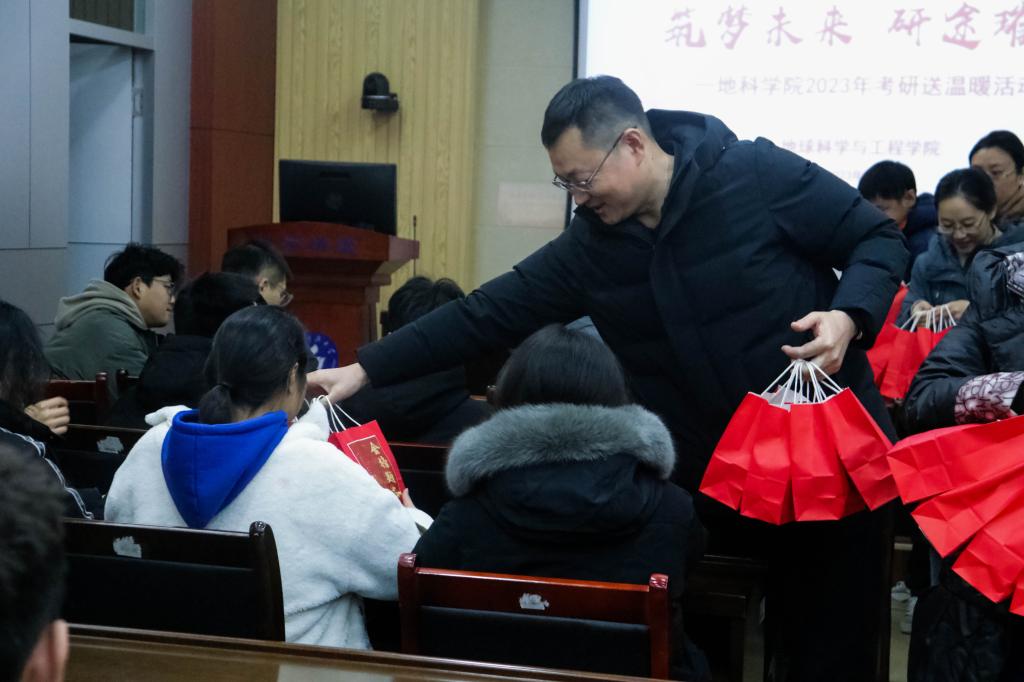 为舒缓考研学子的备考压力,帮助他们坚定信心,12月13日,365best体育官网登录在J6-530会议室开展“筑梦未来研途璀璨”考研送温暖活动,为考研学子送上暖心礼包、温暖祝福,助力考研学子研冬折桂。公司党委书记高慧、副书记兼副经理李晓静、地质学系党支部书记孔凡梅、矿产地质系党支部书记许庆林、地球物理系主任丁仁伟、水文与地质工程系党支部书记夏璐、辅导员俞功一山和考研员工代表参加了活动。