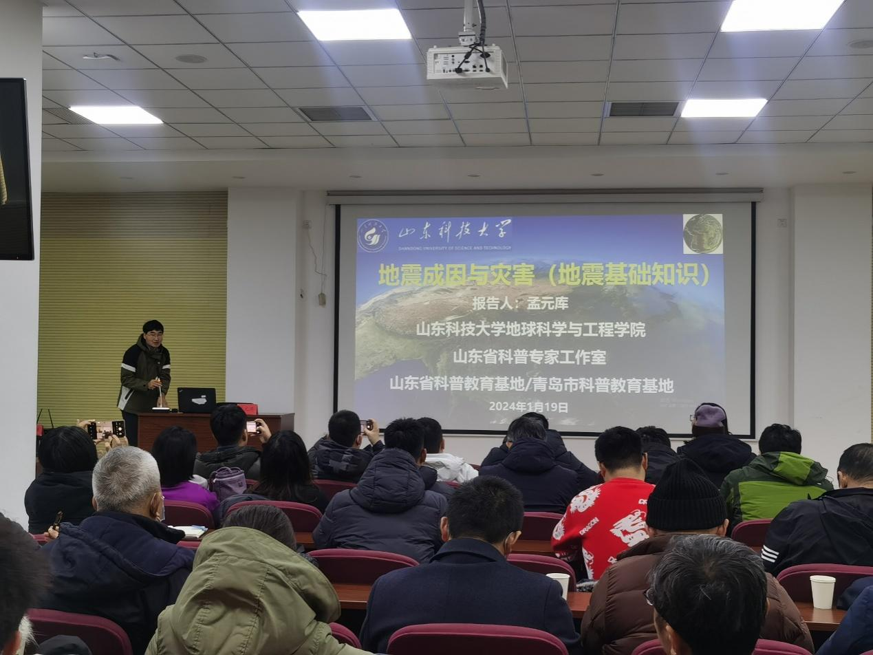 1月19日,公司副经理、山东省科普专家工作室领衔专家孟元库教授,应邀为青岛西海岸新区防震减灾科普志愿者培训班授课,该培训班由西海岸新区应急管理局(地震局)举办。