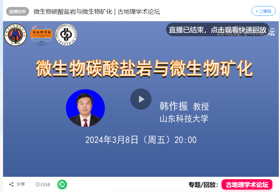 古地理学术论坛由国际古地理学会、中国矿物岩石地球化学学会岩相古地理专业委员会、《古地理学报》编辑部、《古地理学报》(英文版)编辑部、中国石油大学(北京)主办,自2022年9月以来,每月邀请一位国内外知名专家,通过腾讯会议和蔻享学术线上直播间做学术报告。本次论坛由中科院地质与地球物理研究所陈代钊研究员主持,韩作振教授主讲。