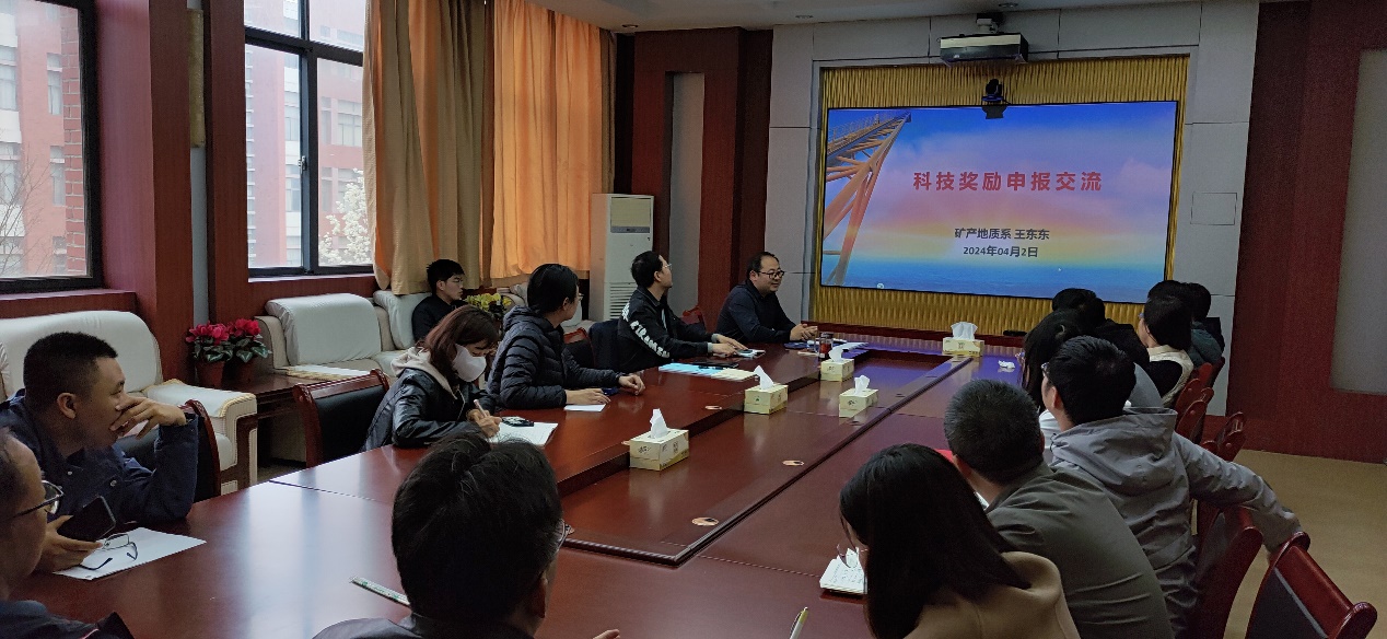 报告结束后,参会教师就创新成果凝练、申报书撰写、申报时间节点等问题与王东东进行了深入交流。通过交流,进一步加深了支部教师对科技奖励申报流程和内涵的认识,为矿产系科技奖励申报工作奠定了良好基础。