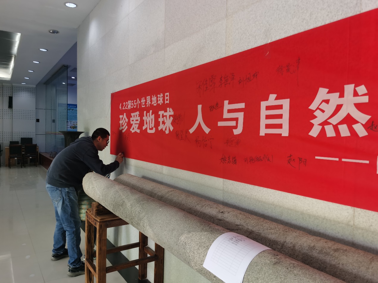 活动期间,前来参观的师生、员工络绎不绝,公司“大地之光”科普志愿讲解队员绘声绘色地向大家讲解了地球科学知识,并通过“鸳鸯矿物”——雄黄与雌黄、“海中仙女”——海百合、“深海潜水艇”——菊石等矿物和古生物标本,向大家展示了地球赐予人类的珍贵礼物,引导大家珍爱自然,保护地球。前来参观的师生和员工情不自禁地感叹于大自然的神奇,纷纷在宣传横幅上写下自己的名字,表示将会从自身做起,保护环境,珍惜资源,做绿色家园的守护者。