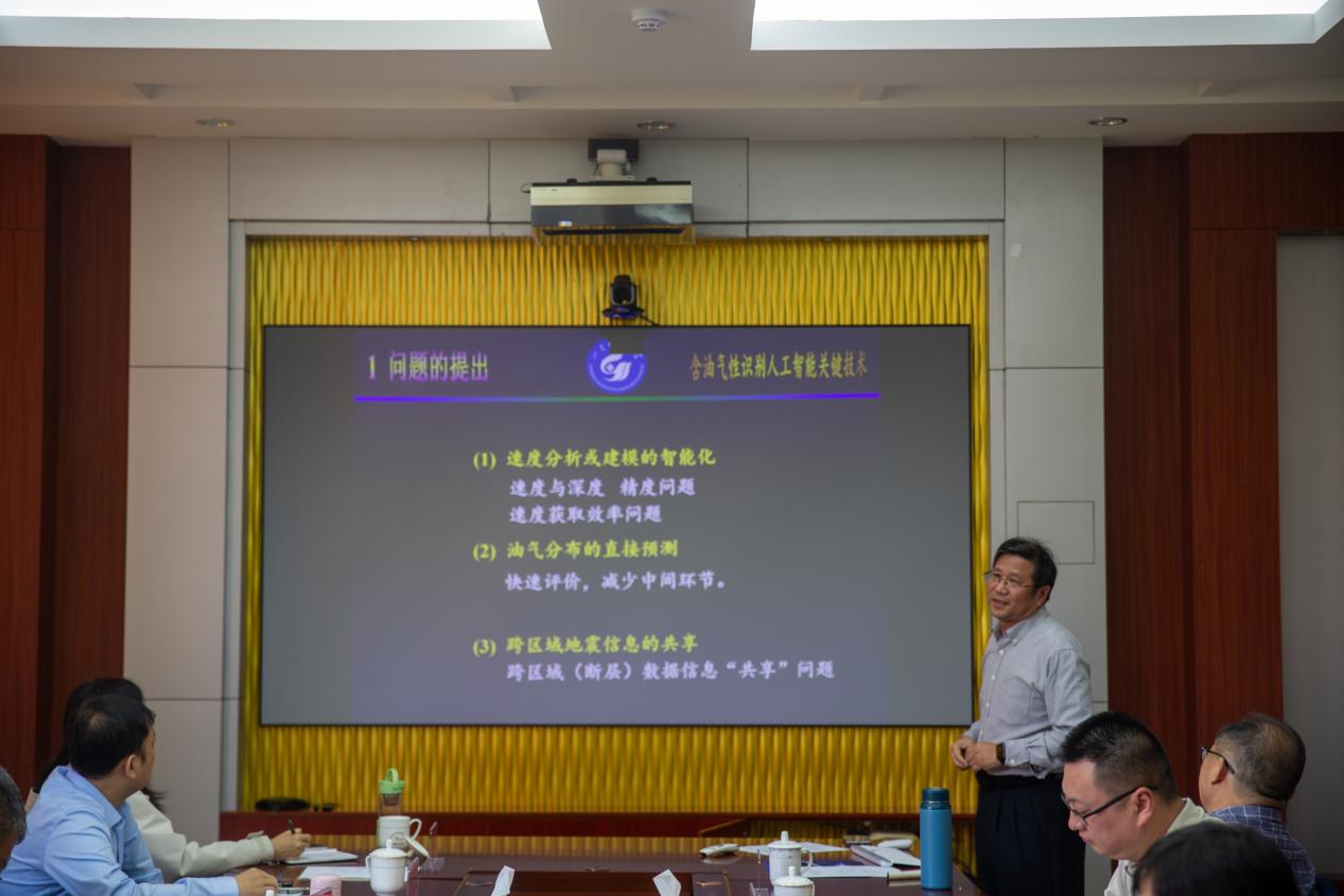 交流过程中,围绕油田难动用储量的储层研究技术问题展开,谢俊、栾锡武、林年添、杨思通和丁仁伟等五位教授和老师,结合自己多年的研究,分别做了题为“裂缝识别、描述与数值模拟研究-以苏东39-61气藏为例”、“青岛市‘一带一路’深水油气创新中心简介”、“油气储层分布预测及评价的机器学习与束搜索追踪方法研究”、“基于多源信息融合的复杂储层多尺度综合智能评价研究”和“基于深度学习的地震低序级断层智能数据化表征研究”的交流介绍。交流座谈后,大家一起参观了地球科学馆。