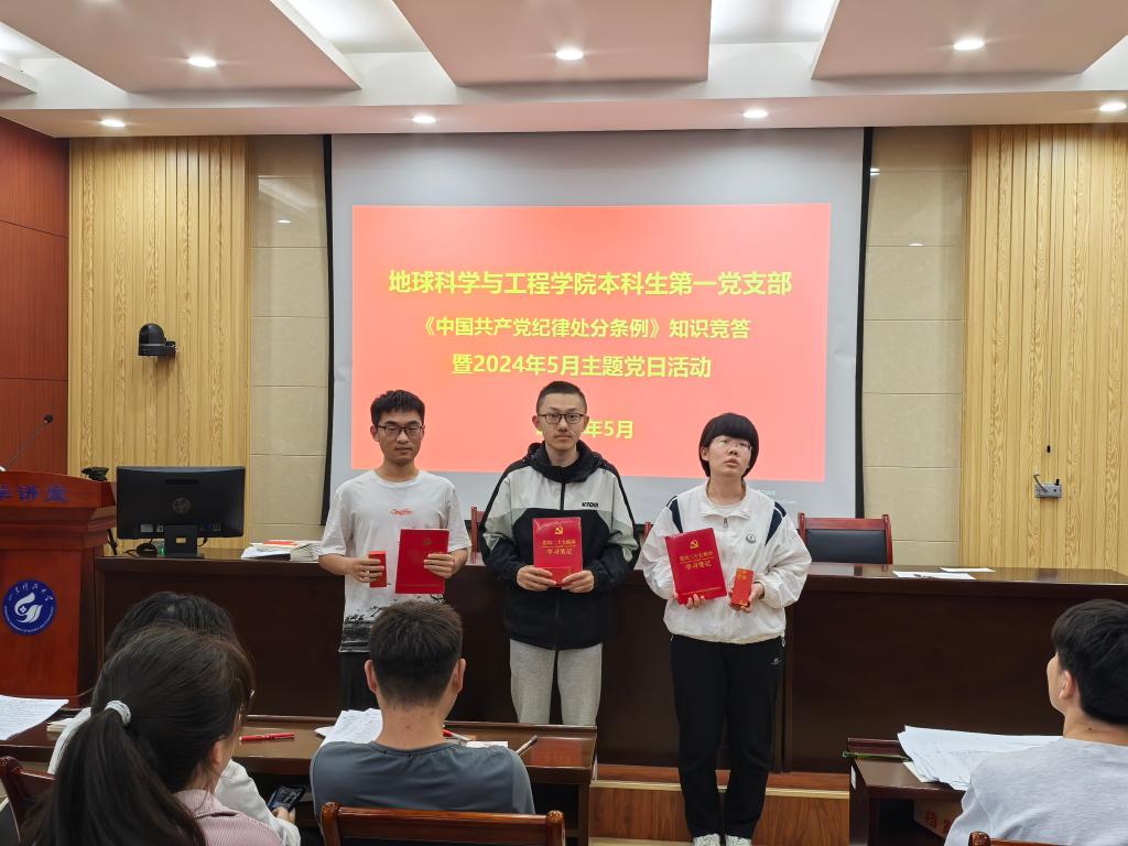 为扎实推进党纪学习教育,5月30日,365best体育官网登录本科生第一党支部举办《中国共产党纪律处分条例》(以下简称条例)知识竞答活动,支部全体党员参加了活动。