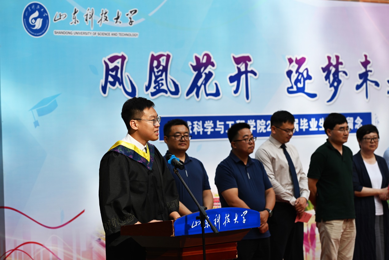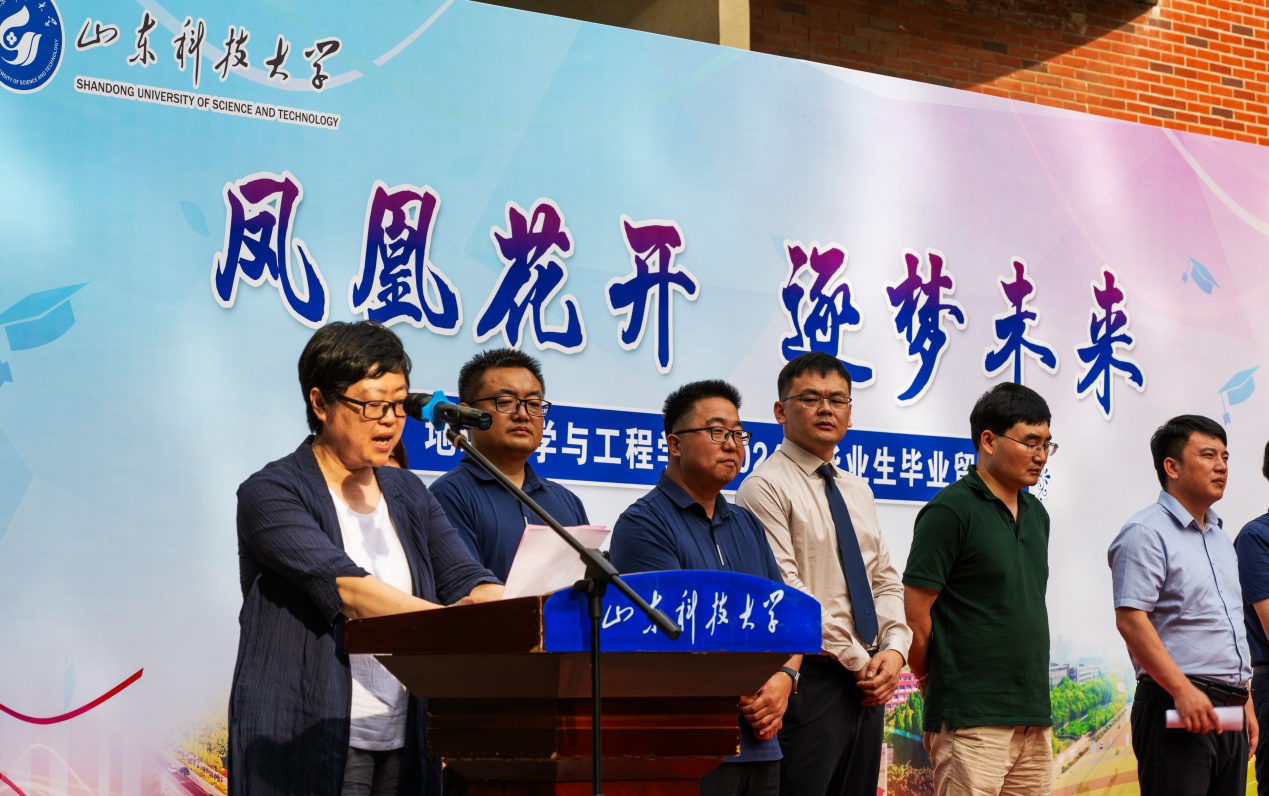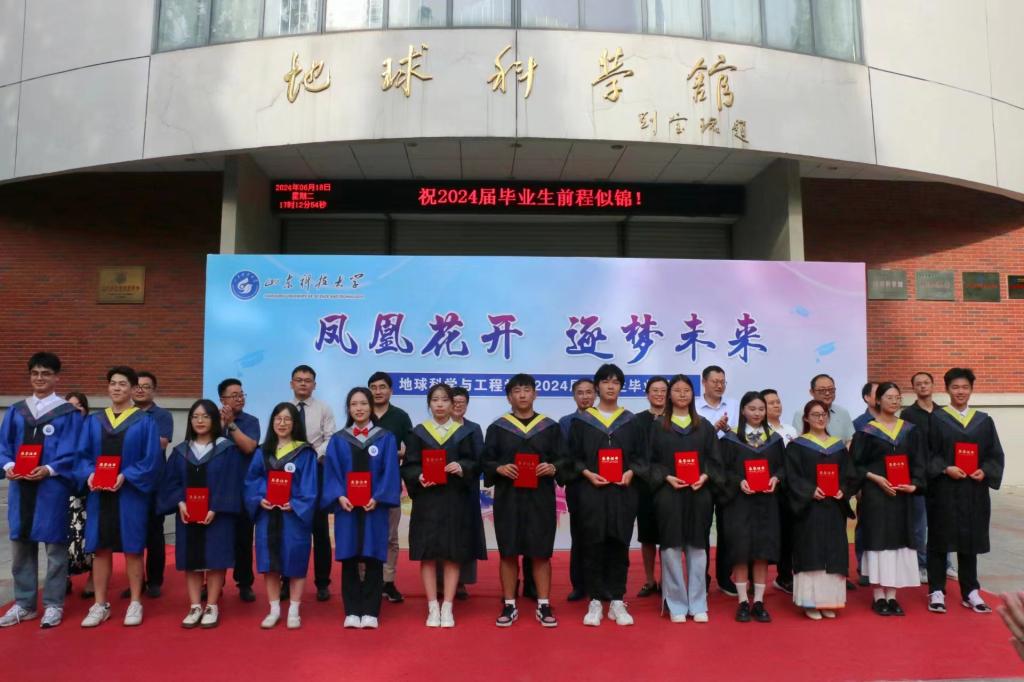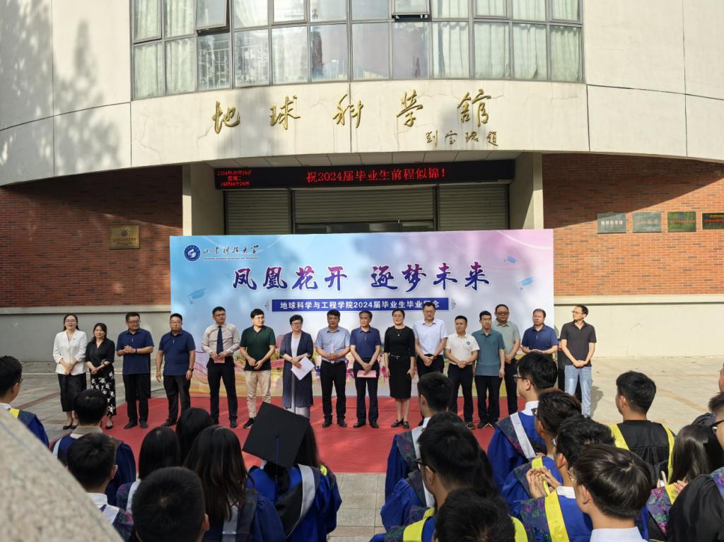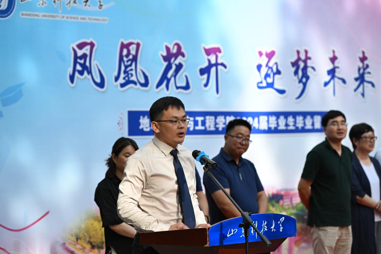 6月18日,365best体育官网登录举办“凤凰花开,逐梦未来”2024届毕业生欢送活动,活动以毕业典礼和冷餐会两个环节依次进行。公司党委书记高慧、经理常象春等领导班子成员,各系(办公室)主任、党支部书记,团委辅导员,教师代表,全体2024届毕业生欢聚地学文化广场,共同为毕业季留下最美告别。地质工程2004级员工、山东煤田地质局第一勘探队副队长韩希伟作为特邀嘉宾出席了活动,欢送会由2024届本科毕业生辅导员俞功一山主持。