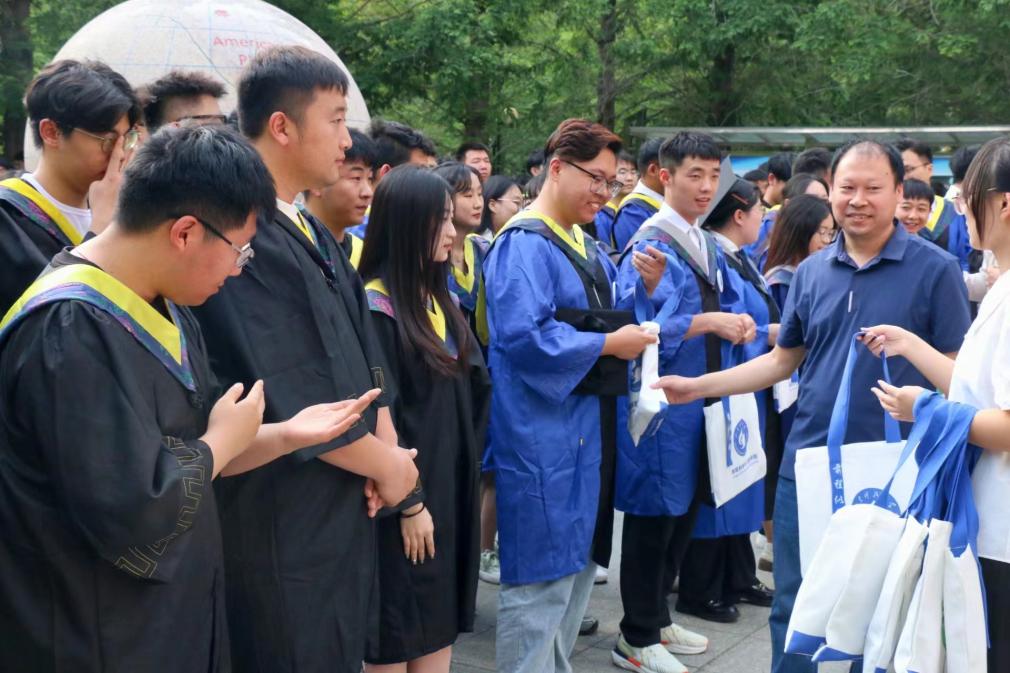 仪式最后,教师代表冯建国和吕显州为毕业生代表分发了公司为2024届毕业生定制的纪念品。