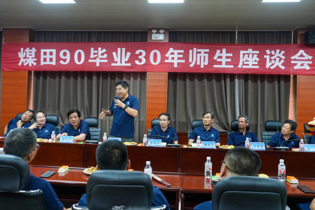 下午3时,师生座谈会在泰安校区2号教学楼201会议室召开,会议由煤田90级员工、继续教育公司党委书记贾长响主持。泰安校区党委委员、管委副主任兼联系我们部主任戴东宝,原公司党委书记吴强,教辅党委书记曲有刚,煤田90级班主任施龙青、高民,365best体育官网登录经理常象春,党委副书记兼副经理李晓静及教师代表姜军、莫德鼒、张明学等出席座谈会,与同学们共温师生情谊。