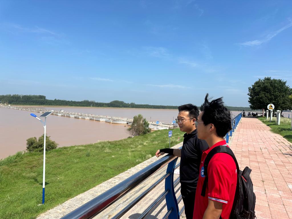 【第二站·菏泽鄄城】在菏泽,小分队于鄄城黄河河务局与学长杨鹏展开对话。学长杨鹏热情招待了小分队一行,并邀请队员们亲至黄河边,面对滚滚的黄河水,开始了鲜活生动的黄河故事讲述。小队成员了解到了黄河在该流域防洪方面存在的挑战,鄄城河务局前期所做的工作以及采取的治理举措。同时,学长杨鹏呼吁学弟学妹们珍惜读书时光,多出去走走看看,增长见识,拓宽眼界,如此才能在未来的道路上行稳致远。