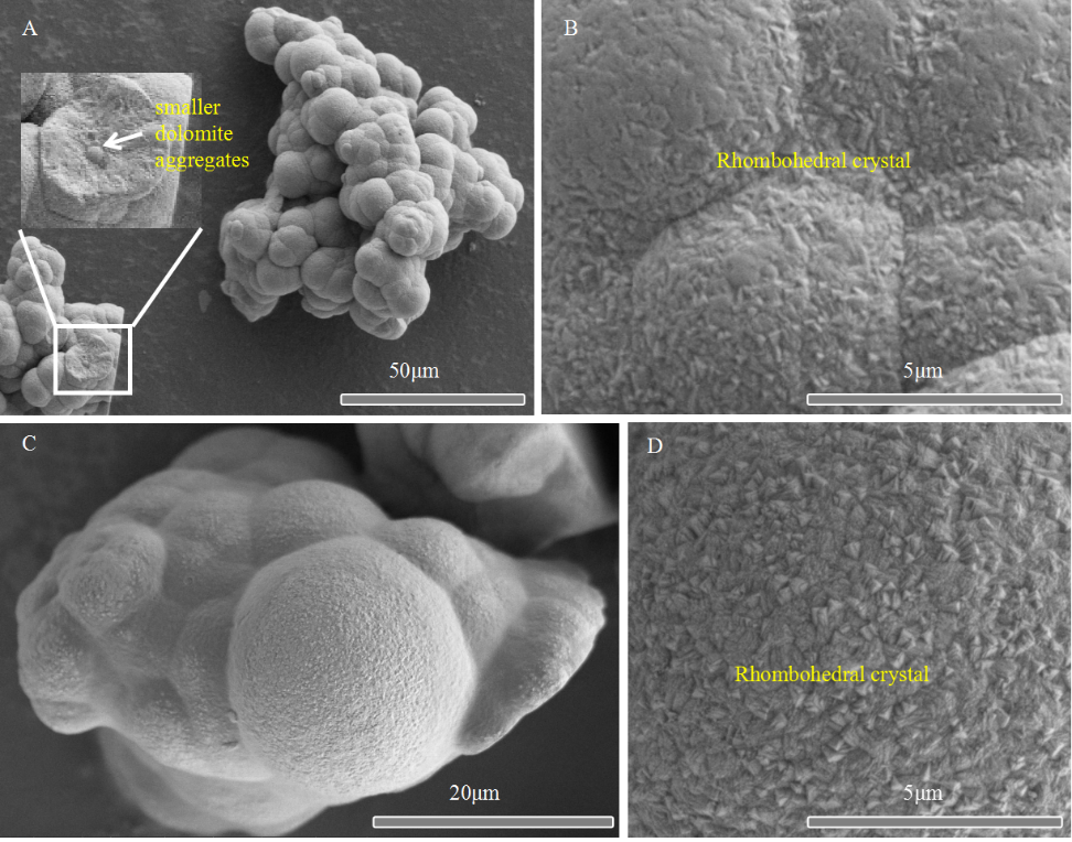 白云岩是重要矿石和油气储层,其形成也是全球碳循环过程中重要的“碳储存”途径。地质历史时期,白云岩中主要矿物白云石主要是在常温地表条件下形成,而在现代开放海洋中,白云石的沉淀却非常罕见,因此,关于白云石在无机条件下通过化学沉淀方式直接成功形成的报道较少。韩作振教授团队在含有不同Mg/Ca比的纯化学无机溶液中成功沉淀出具有一定有序结构的白云石,结合分子模拟探讨了NH3在白云石沉淀过程中的重要作用,揭示了NH3能够克服动力学障碍,加快白云石的成核及生长;该研究创新性提出了常温无机环境中具有一定有序结构白云石原生沉淀的新成因机制,为地质历史时期和自然水体环境中白云石形成机制的研究提供了重要的参考,同时也为白云岩储层的油气地质勘探提供重要意义。