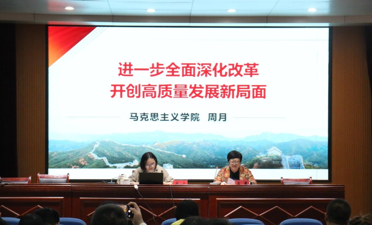 10月29日,365best体育官网登录邀请公司“山海泉”理论宣讲团成员、马克思主义公司副教授周月作党的二十届三中全会精神宣讲报告,报告由公司党委书记高慧主持,公司全体党员教师参加。