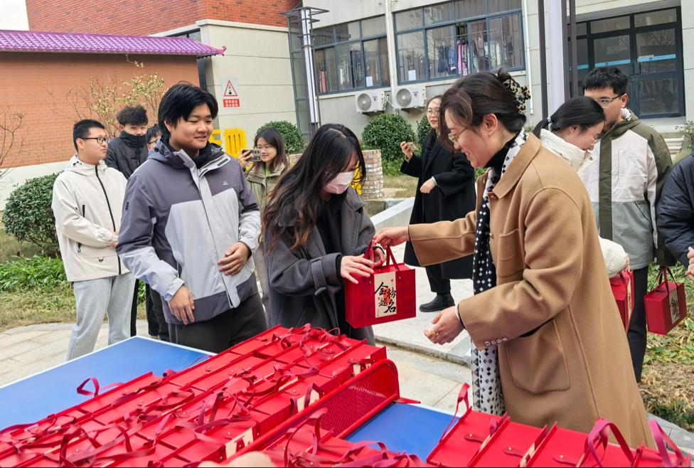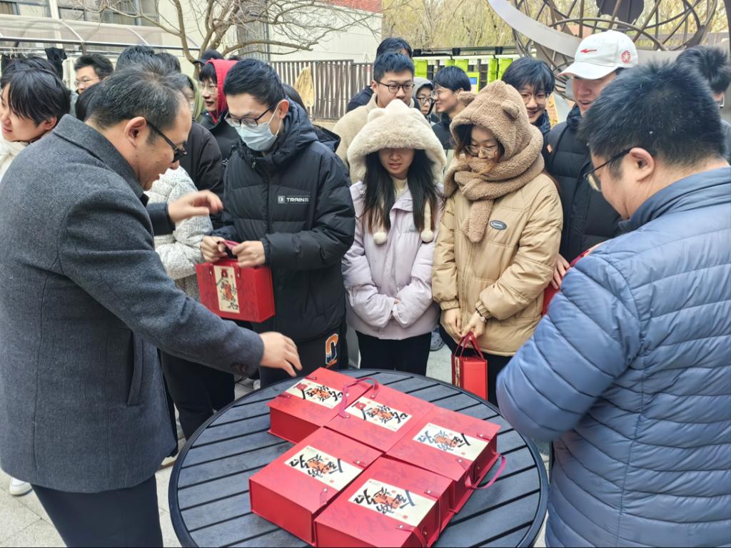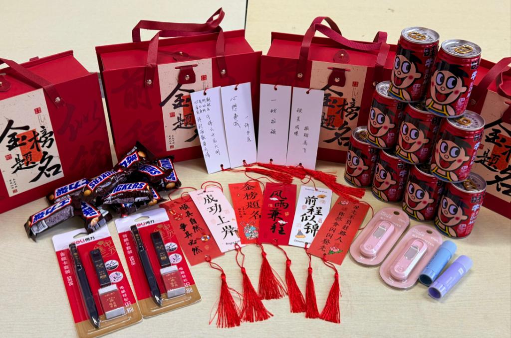 随后,老师们为考研学子送上公司精心准备的“金榜题名”考研大礼包。每一份大礼包内包含“连中三元”涂卡文具套装、“旺气冲天”旺仔牛奶、“牛气冲天”士力架糖果以及“考研必胜”手写祝福书签,饱含了公司对考研学子们浓浓的关爱和殷切的期盼,希望考研学子平安如意,金榜题名!