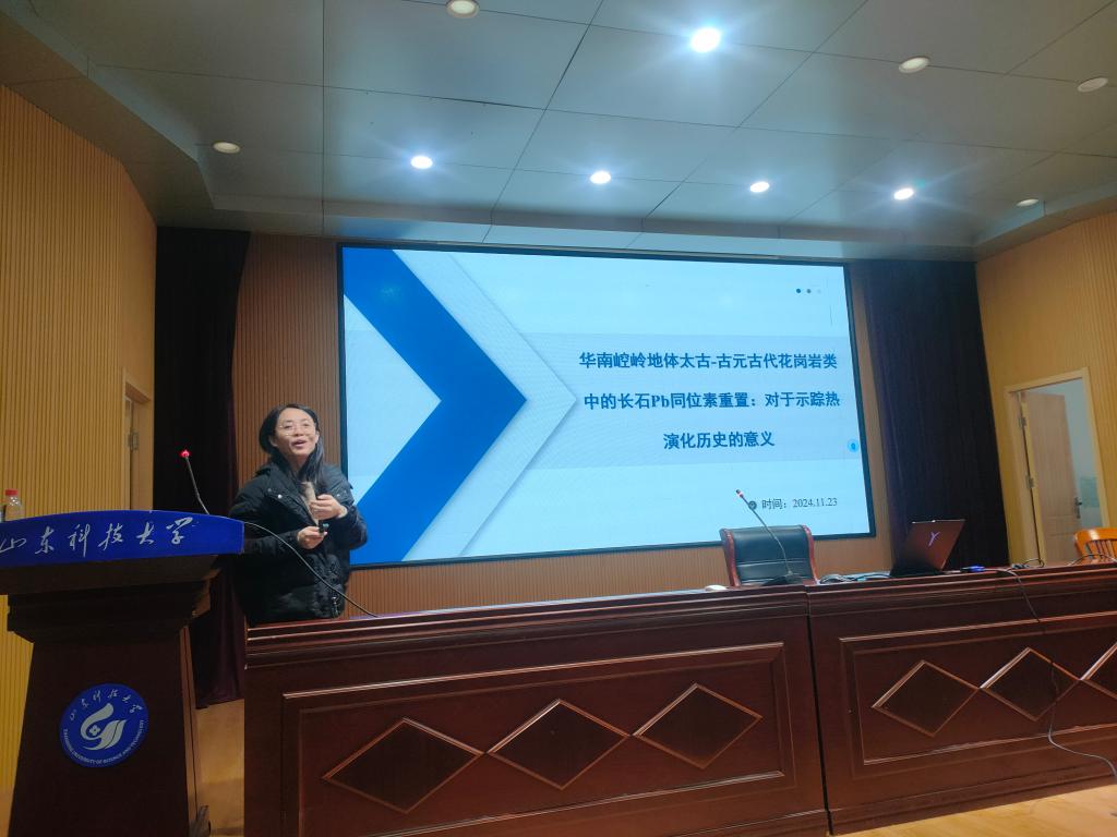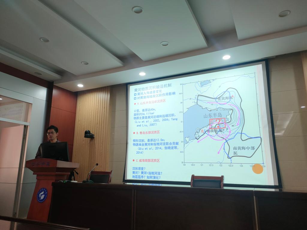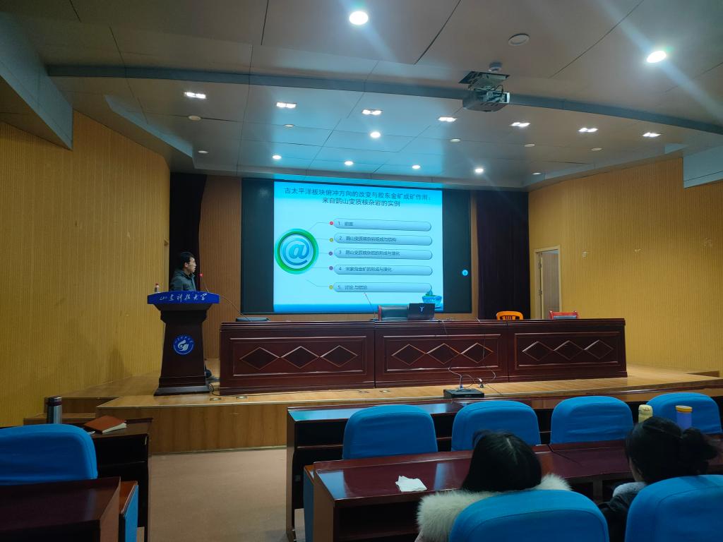 报告中,倪金龙、孟凡雪、张丽萍和刘金庆四位老师结合自己的最新研究,分别以“古太平洋板块俯冲方向的改变与胶东金矿成矿作用:来自鹊山变质核杂岩的实例”、“典型农耕区土壤-大气沉降-小麦系统重金属迁移特征及MLR模型预测”、“华南崆岭地体太古-古元古代花岗岩类中的长石Pb同位素重置:对于示踪热演化历史的意义”、“山东半岛南部泥质区物源示踪与沉积环境演变”为题,从各自研究领域入手,对地质学科学研究从科学问题的提出到研究思路和方法、研究方案规划等方面向研究生做了全方位介绍。