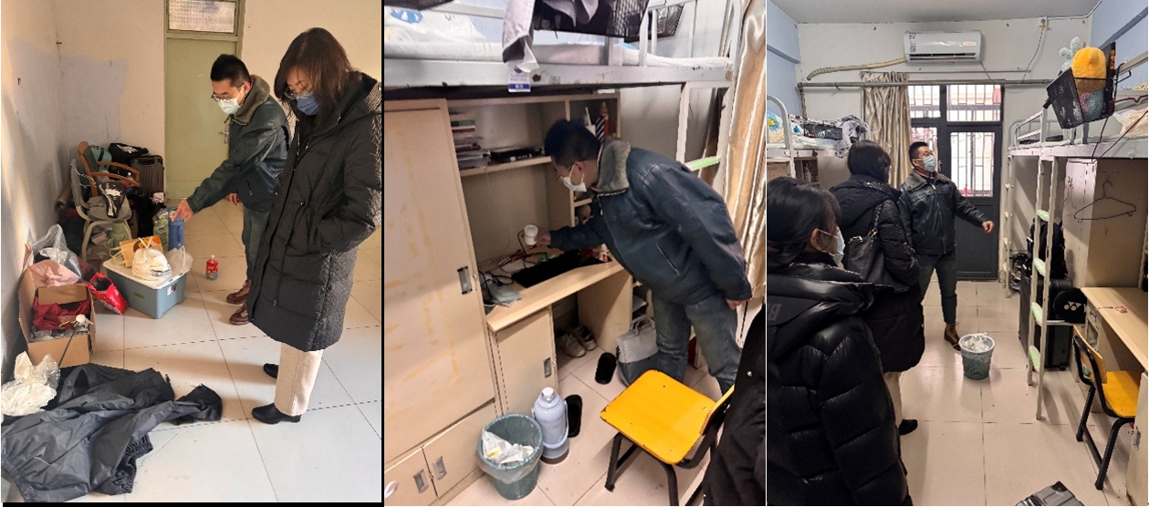 辅导员们对员工宿舍展开全方位、无死角的安全隐患排查,聚焦在可能引发安全事故的“高危地带”,重点检查是否存放大功率违禁电器、易燃易爆违禁物品和私接电线等违规用电行为。检查中,辅导员们与员工亲切交谈,仔细询问生活、学业和就业情况,鼓励员工积极参加寒假社会实践,了解国情社情,锤炼意志品质。
