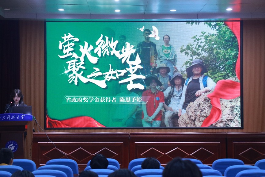 省政府奖学金获得者杨怡宁分享了竞赛科创经历,讲述了从团队组建初期的磨合,到项目推进过程中的重重挫折与关键突破,用亲身经历激励同学们积极投身竞赛,在挑战中锤炼自我。陈思予婷着重介绍了社会实践的收获,并分享了实用的学习方法,如借助思维导图梳理知识体系、组建学习小组强化学习监督等,鼓励同学们拓宽视野,积极参与社会实践,在实践中增长见识。