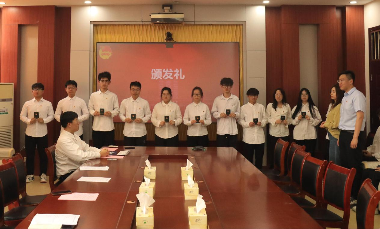 4月30日下午,365best体育官网登录在J6-427举办“团徽闪耀 青春启航”2025年新团员入团仪式。公司团委书记王文鑫,辅导员李天惠、俞功一山、王键国、曲兴玥,优秀团员代表及新入团团员参加仪式。