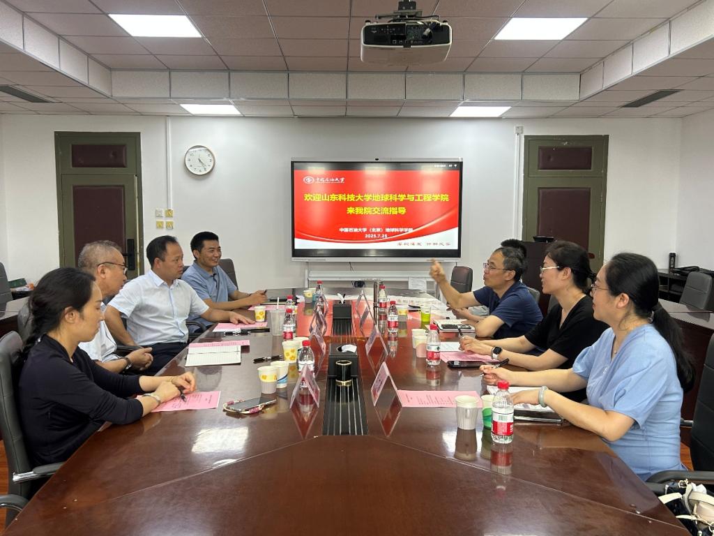 25日下午,常象春一行到访中国石油大学(北京)地球科学公司,公司党委书记姜福杰、经理王贵文等热情接待。姜福杰详细介绍了公司党建思政、团队队伍、学科布局、科研平台及人才培养等情况。王贵文就团队建设、人才培养、科学研究等方面的协作提出建议,并交流了公司发展规划。常象春介绍了公司在科研成果、招生培养及员工工作等方面的做法,提出在联合科研攻关、团队交流互访、实验教学平台共享等领域深化合作。