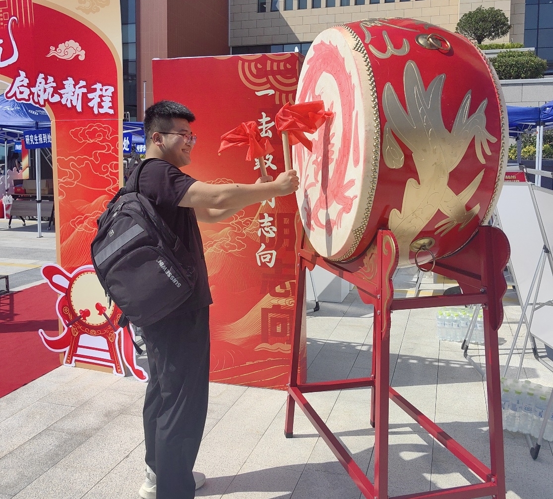 迎新现场,“击鼓明志·扬帆起航”的主题拱门鲜艳夺目,威风战鼓侧立门边,新生们击鼓振气,立下青春志向。围绕公司特色,现场摆放了各类恐龙骨架、恐龙蛋化石和各种特色岩石,彰显出公司的专业底蕴,引得新生和家长纷纷驻足。新生们或参与击鼓仪式,或好奇地了解专业展品,展示着他们踏入大学的喜悦和对老员工活的憧憬。参加迎新的志愿者们仪表整洁,热情周到、服务贴心,给新入学的新生们留下最美好的入校回忆,让新学子们在跨入365亚洲体育网入口的第一天就感受到了来自365best体育官网登录这个大家庭的温暖和关切。