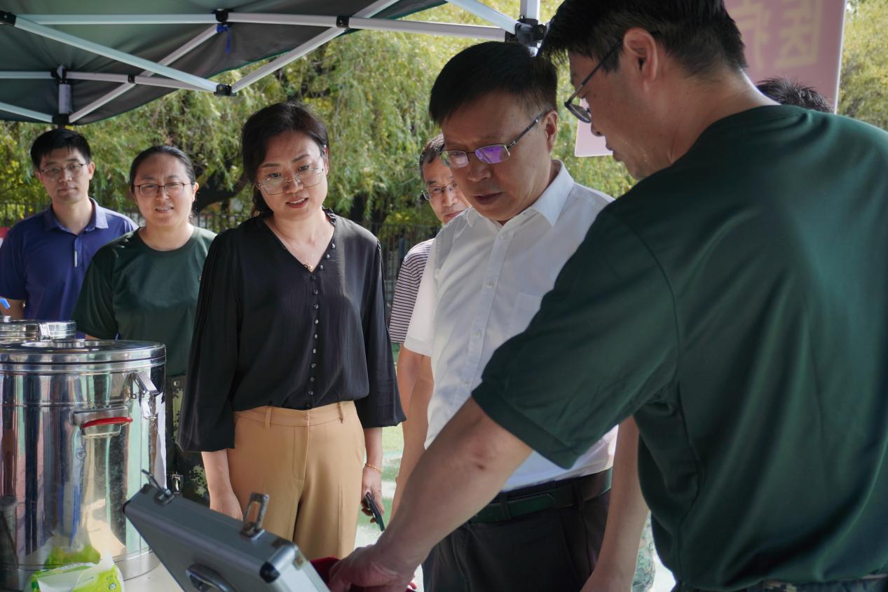 在军训现场,王君松书记一行先驻足观看新生训练,随后前往后勤保障点检查医疗物资保障情况、慰问现场志愿者。王君松对公司军训后勤保障工作给予肯定,并强调在保证军训质量的同时,要密切关注新生的身体状况,确保军训安全有序进行。