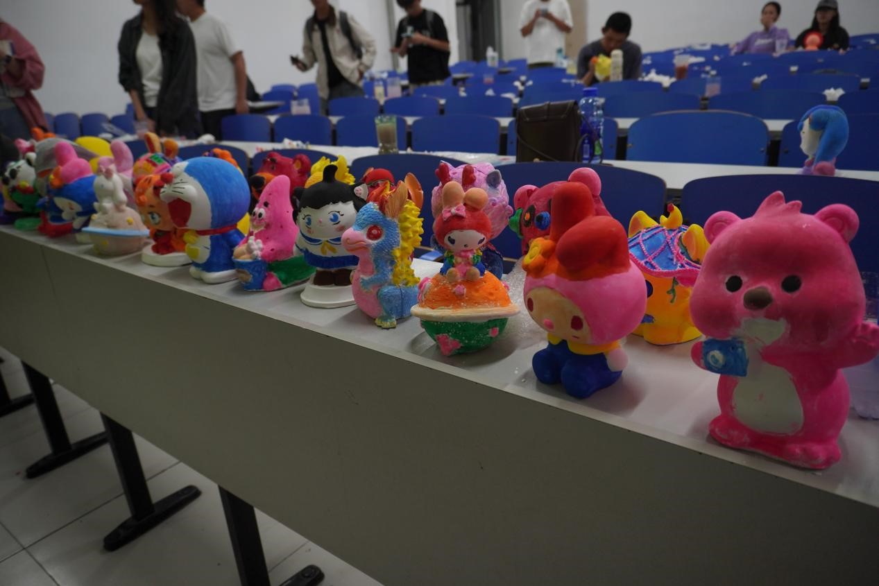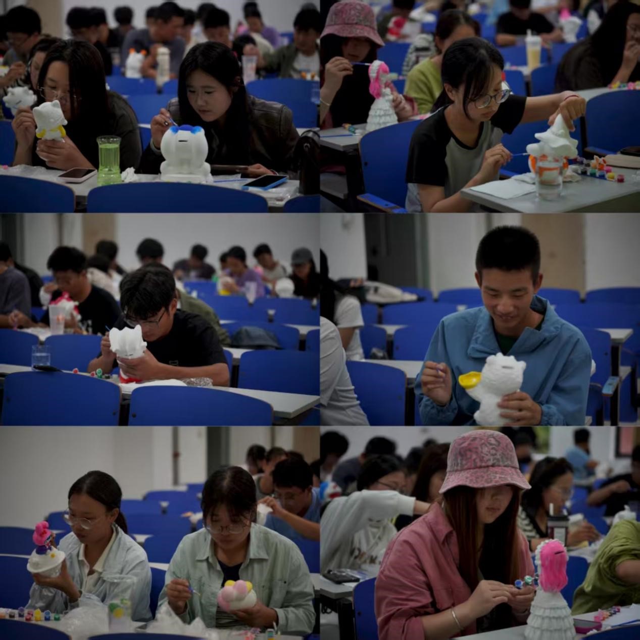 活动在轻松有序的氛围中展开。同学们在挑选心仪的石膏娃娃后,以地质元素为创作灵感,在调和色彩、勾勒细节的过程中释放压力、表达自我。活动现场特别设置了“权益心声角”,工作人员在提供绘画支持的同时,主动了解同学们在日常学习生活中的实际需求与建议,将服务延伸至创作交流之中。