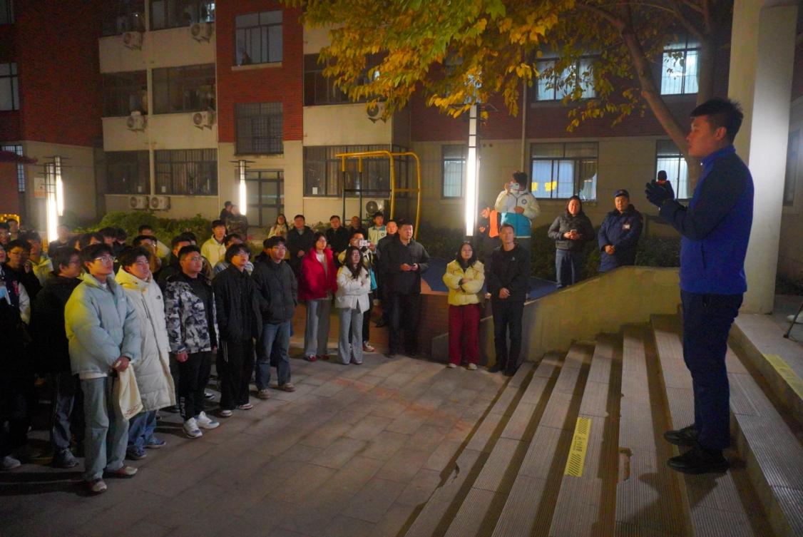 为确保“真演练、真动作”效果,365best体育官网登录提前成立专项小组,针对夜间视线受限、人员集中等特点制定《365best体育官网登录员工公寓GC3夜间消防演练方案》,明确断电处置、疏散路线、集合地点及责任分工。21时30分,消防警报启动,值班人员立即拨打校内报警电话并启动应急广播,楼内同步断电模拟真实火场环境。员工在辅导员和安保人员引导下,用湿毛巾捂口鼻、弯腰低姿,沿疏散路线快速撤离。仅用5分钟,全体人员安全抵达GC3楼下小广场集合点。