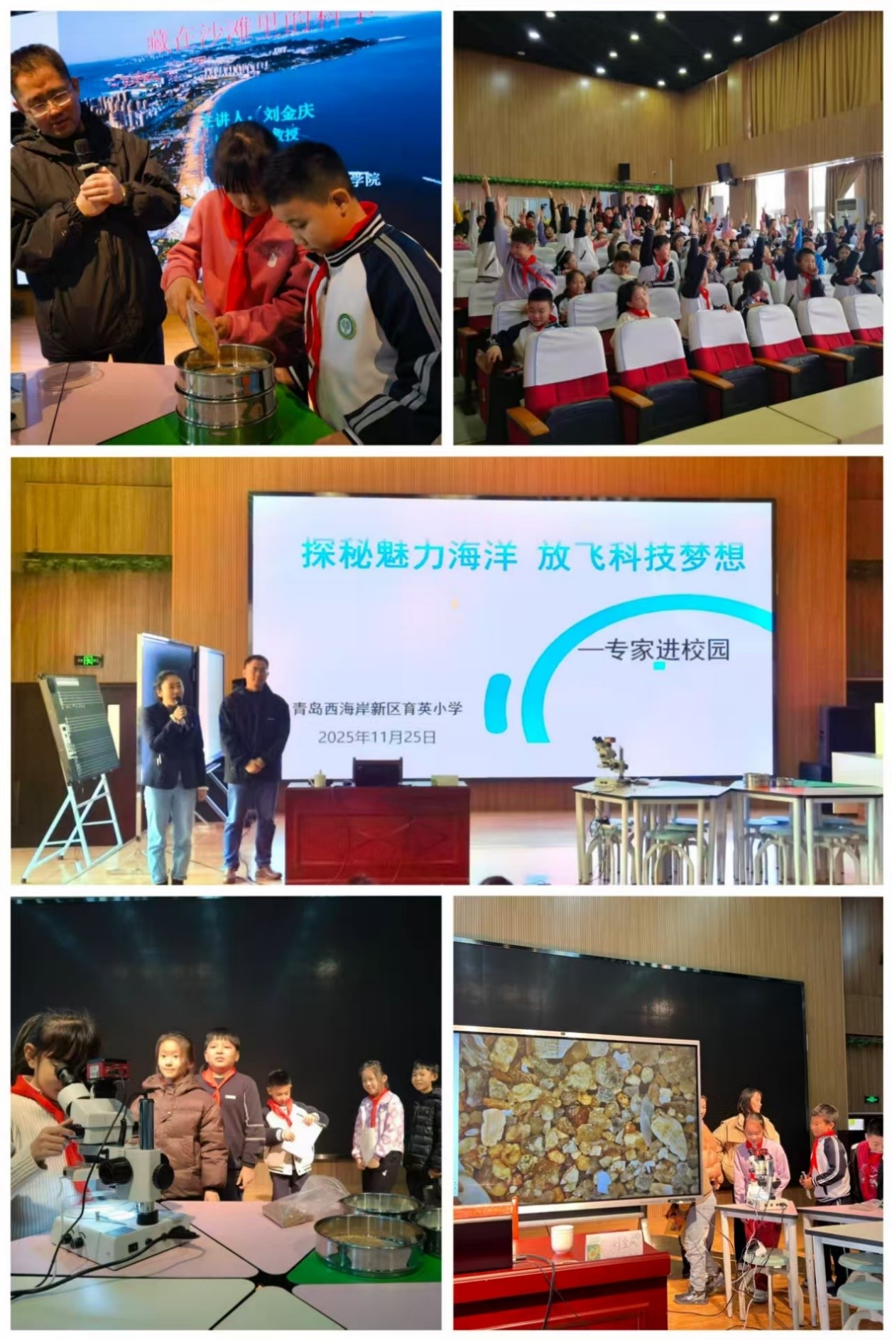 近日,青岛市科普专家、365best体育官网登录地质学系副教授刘金庆走进青岛市黄岛区育英小学,以《藏在沙滩里的科学》为题,为师生带来一场妙趣横生的科普讲座。