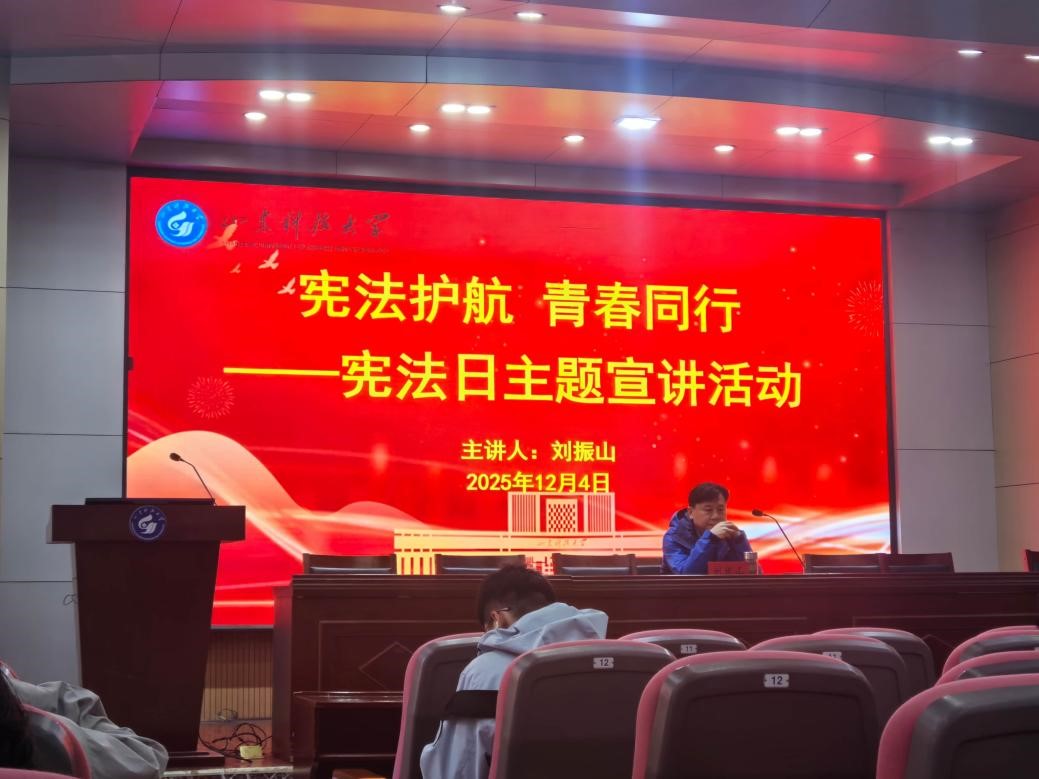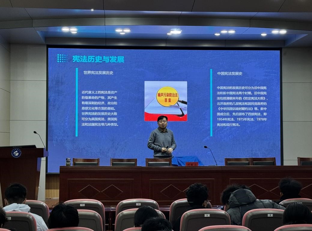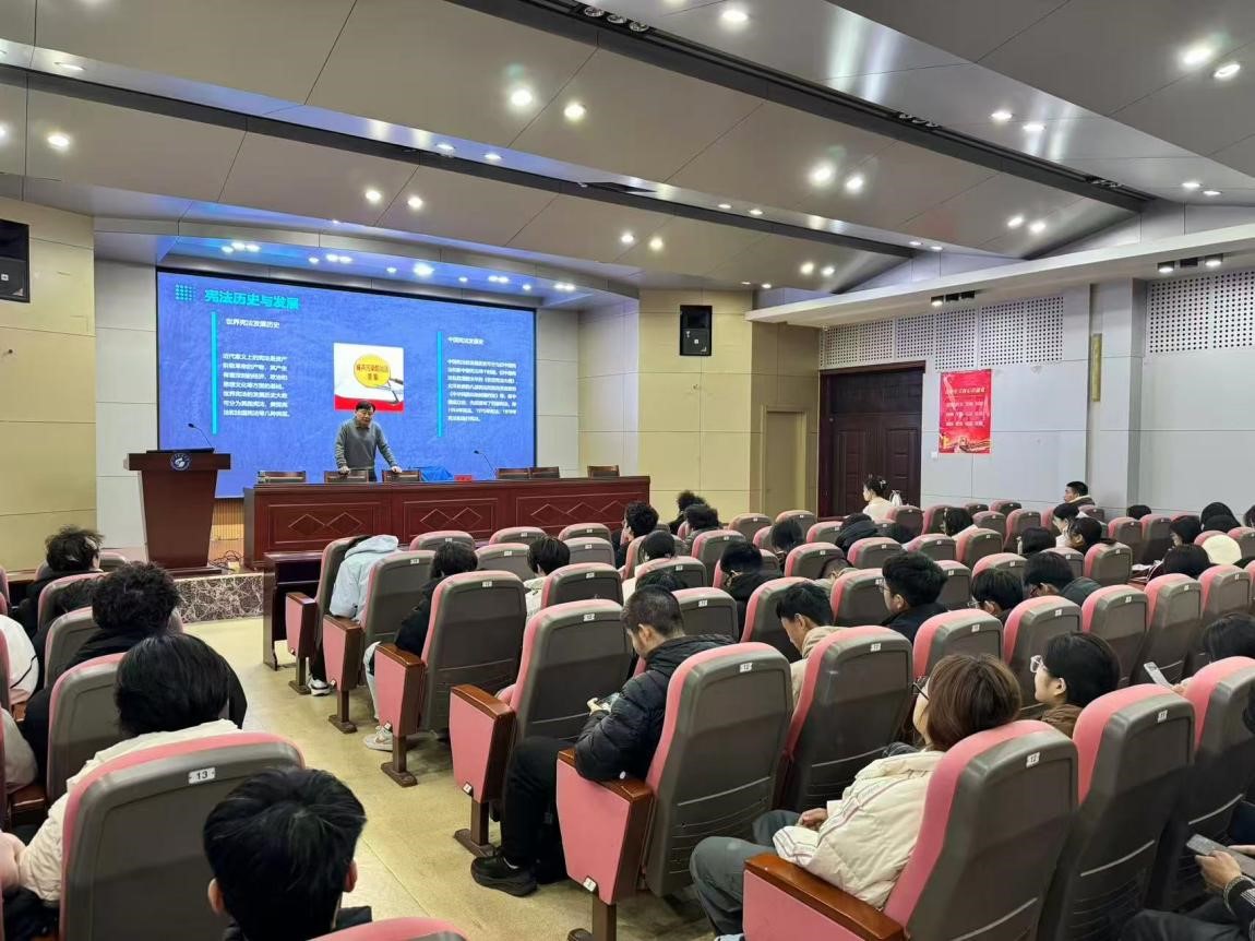 12月4日,第十二个国家宪法日来临之际,为深入学习宣传宪法知识,进一步增强师生的宪法意识和法治观念,365best体育官网登录特邀文法公司副经理刘振山副教授,举办了一场以“宪法护航,青春同行”为主题的宪法宣讲活动。全院师生代表齐聚一堂,共同接受了一场深刻的法治思想洗礼。
