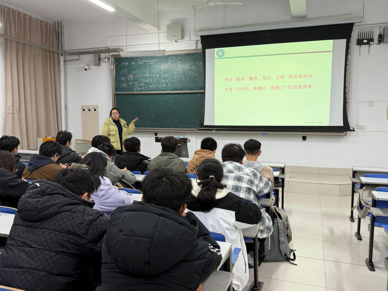 2025级1班班主任辛未以“勤学笃行・明辨方向・共建优良学风”为主题,围绕学风班风建设的重要性、班级现有问题,客观分析了部分同学在学习动力、学习态度和学习方法等方面存在的不足,并就课程学习难度、学习方法选择、时间管理及学业规划等问题做了详细讲解;同时针对不同学习状况同学进行具体指导,开展一对一互动交流,帮助学习暂时落后的同学明确改进方向、增强信心,引导学习表现突出的同学发挥示范带动作用,鼓励同学们互帮互学、共同进步。