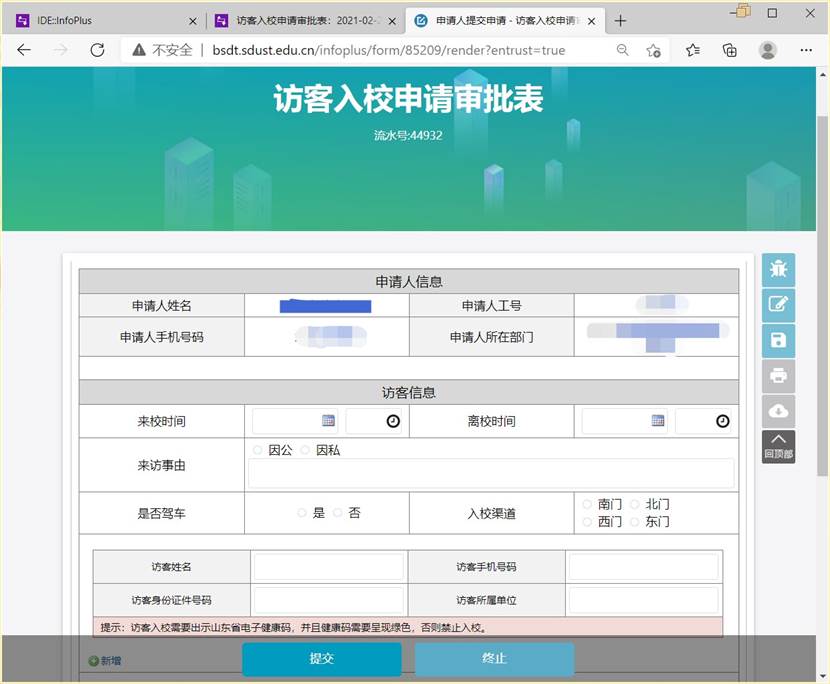 申请人需填写访客信息: