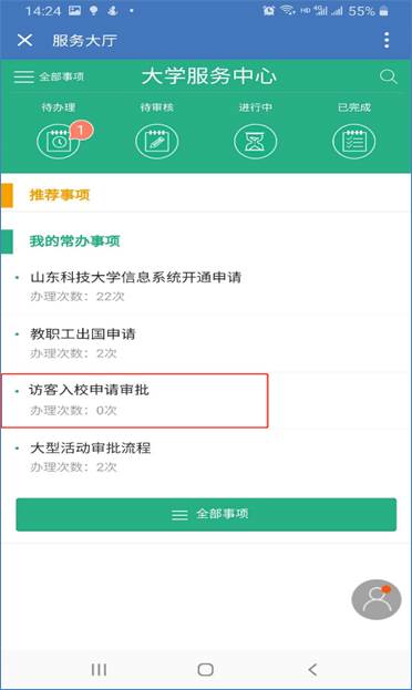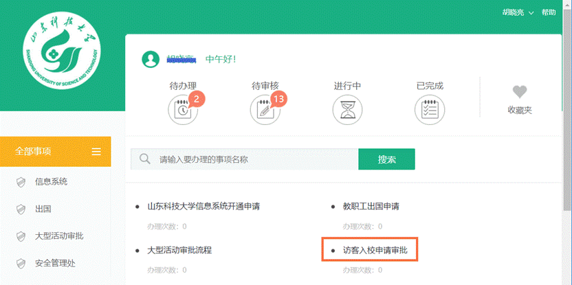 ⑤选择[访客入校申请审批]