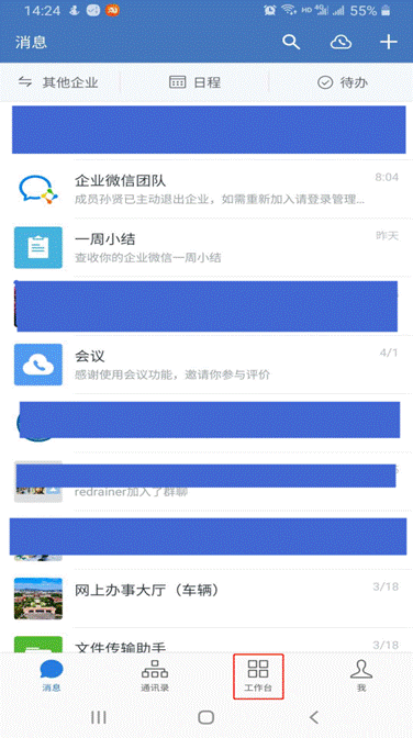 ①打开企业微信