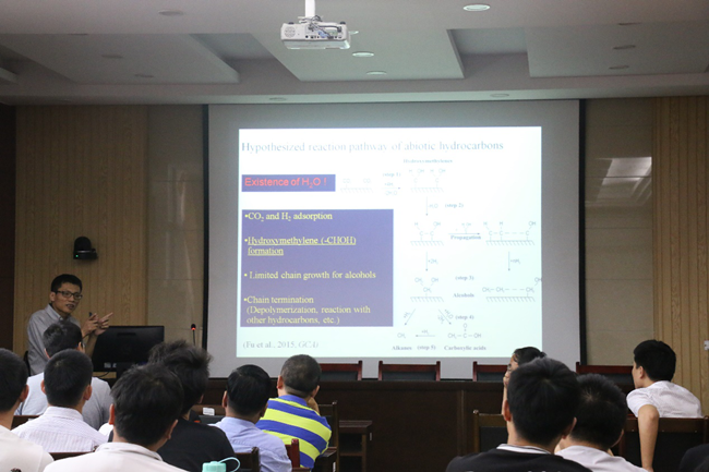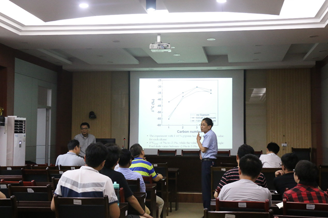 2019年6月28日下午,美国休斯顿大学地球与大气科学系教授,美国石油地质学家协会会员、美国地球化学协会会员、美国地质协会会员符琦为公司师生作了题为“Assessment of reaction pathways in organic reactions: Implications for generation and transformation of organic compounds”的报告。此次报告由公司副经理常象春主持。