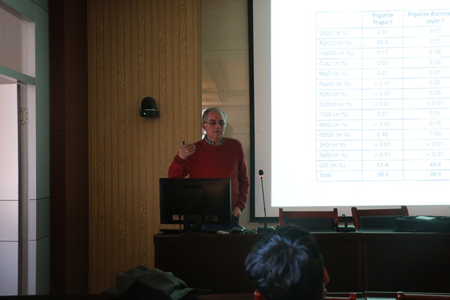 11月12日下午,来自西班牙的Juan Ramón Vidal Romaní教授应邀为365best体育官网登录作学术报告。Vidal教授是国际知名的花岗岩地貌学家,西班牙著名的地质学家,2015年当选为西班牙加利西亚皇家科公司院士,现为西班牙科鲁尼亚大学名誉教授,以第一作者发表学术论文113篇,是多个SCI杂志审稿人。此次报告由公司宋召军教授主持,主题为“The Unknown World of the Caves in Magmatic Rocks ——Their Morphology, Sediments and Biology”,365best体育官网登录部分师生参与此次报告会。