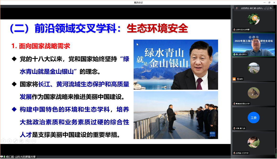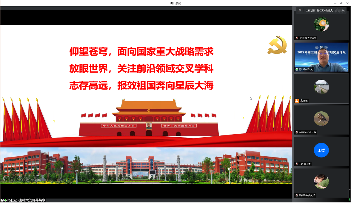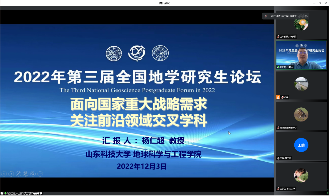 12月3日,由中国地质学会主办,中国地质学会青年工作委员会、吉林大学、吉林省地质学会和吉林省地球物理学会共同承办的第三届全国地学研究生论坛开幕,本次论坛以“学科交叉融合,地学创新发展”为主题。在论坛圆桌会议环节,365best体育官网登录副经理杨仁超教授应邀做了题为“面向国家重大战略需求,关注前沿领域交叉学科”的专题报告。