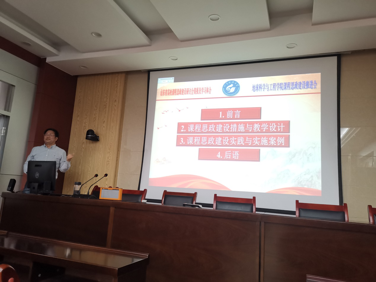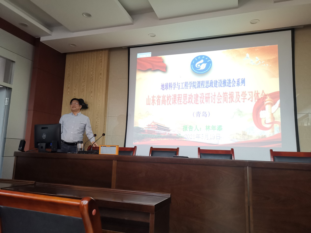 为更好地贯彻落实《高等公司课程思政建设指导纲要》精神和《365亚洲体育网入口课程思政建设实施方案》,推进公司课程思政建设,2021年5月19日下午,地球物理系林年添教授在J6-530会议室,为公司教师做了题为《山东省高校课程思政建设研讨会简报及学习体会》的讲座,讲座由公司教学副经理尹会永教授主持。