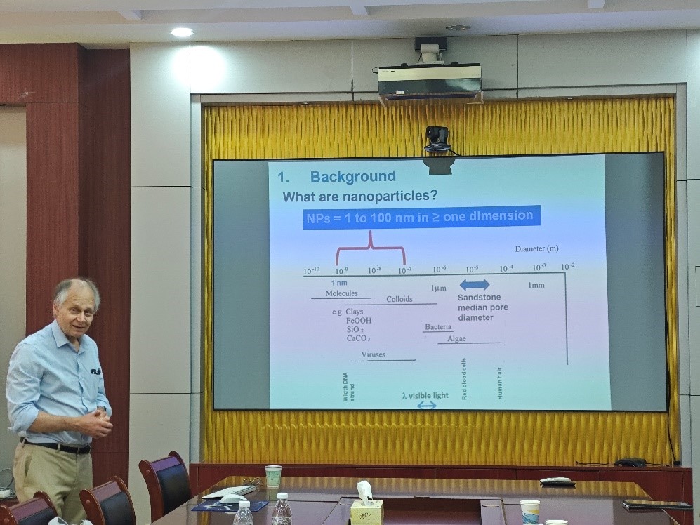报告中,John Tellam教授聚焦砂岩地下水系统中纳米颗粒迁移的关键科学问题,系统阐释了其复杂的物理化学过程。他结合团队最新的实验模拟与数值模型研究成果,深入剖析了影响纳米颗粒在砂岩孔隙中迁移、滞留与释放的关键机制。随后,Tellam教授重点展示了该研究在地下水污染修复、核废料地质处置安全评估以及非常规能源开发(如压裂液微粒运移)等领域的重大应用价值与前沿进展。