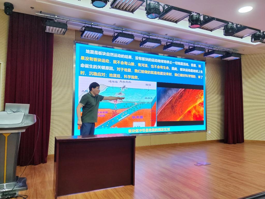 讲座中,孟元库从唐山大地震、汶川地震等地震实例展开讲解,结合自身工作经历,以渊博的学识和图文并茂的形式为同学们介绍了地震的形成原因、地震带的分布,并普及了地震发生时在公司、家庭以及公共场所应如何逃生避险、避震原则和震后采取何种自救手段等知识。