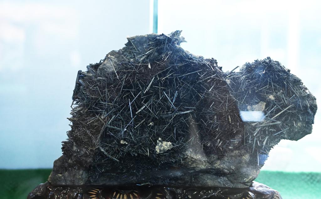 形态:晶体呈针状或柱状,柱面有纵纹,集合体呈放射状或晶簇。